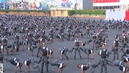 شاهد الرئيس عبد الفتاح السيسي عروض القوة البدنية والدفاع عن النفس، من قبل رجال الشرطة.