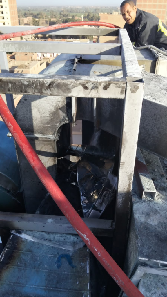 وتوجة ‘إلى مكان الحادث الحادث ضباط المركز والإسعاف وقوات الحماية المدنية والإطفاء وتبين من المعاينة والفحص نشوب حريق في تكييف أعلى سطح المستشفى وتمكنت قوات الحماية المدنية والإطفاء من السيطرة واخماد الحريق دون وقوع خسائر بشرية.