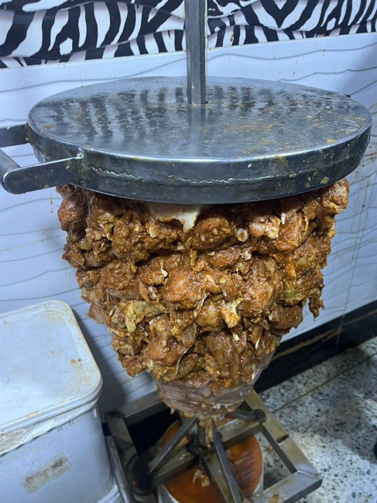 وخلال الحملة، تم ضبط كميات ضخمة من اللحوم والدواجن غير الصالحة للاستهلاك داخل مطعم شهير، شملت: 100 جردل شاورما دجاج وزن الجردل 19 كجم بإجمالي 1.9 طن، 3 سيخ شاورما دجاج وزن الواحد 120 كجم بإجمالي 360 كجم.